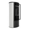Ocelová kamna na dřevo KRATKI ERIK Ø 150 5,5 kW dekorativní keramika ŠEDÝ SATÉN samozavírací dvířka