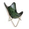 Green Leather Butterfly Chair & Ottoman - Handmade Relaxing Chair/Stool