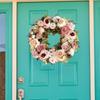 Umělý květinový věnec, jarní, odolný, barevný, se zelenými listy, nástěnná ozdoba