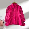 Dámské letní šifonové tričko s klopou, lucernou a dlouhým rukávem, topy, 3D květinový tisk, poloprůhledná síťovaná halenka s jedním řadou