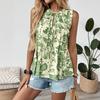 Ladies Flying Sleeve Stand Collar Floral Shirt Vest Top