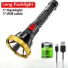 3000LM Long Size ABS Flashlights Rechargeable Bright LED Torch with USB Cable 3 Modes Waterproof for Camping Hiking Fishing