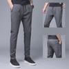 Men Suit Pants Ice Silk Straight Side Pockets Waist Drawstring Elastic Thin Solid Color Quick Dry Gym Traning Jogging
