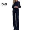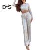 2 ks/sada Dámské střapcové flitrové párty oblečení Set O výstřih s dlouhým rukávem Ustřižené topy Vysoký pas Široké nohavice Sada dlouhých kalhot