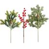 Artificial Red Pine Needle Branch Christmas Artificial Green Plant Flower Bouquet Home Decoration Flower Arrangement Accessories