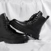 Thick Bottom Mens Mid-Calf Boots Lace Up High Top Genuine Leather Motorcycle Boots Stylish Outdoor Casual Footwear Leisure Walk