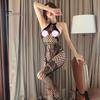 Women Sex Jumpsuit Hollow Out See-through Fishnet Off Shoulder Sleeveless Crotchless High Elasticity Thin Skinny Halter Neck Lady Honeymoon