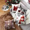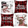 Červený vánoční povlak na polštář Vločka Sněhulák Vánoční stromek Vánoční ozdoby