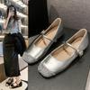 Silver Shallow Mouth Flat Mary Jane Shoes Fashionable and Comfortable Women's Shoes Summer Retro British Single Shoes Shoes