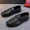 Male Casual Shoe Flat Animal Print Men's Leather Shoes Round Toe Black Loafers Designer Summer Sale Trend Common Adults Pu