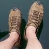 Summer Flat Designer Peep Toe Sandal Outdoor Men Anti Slip Casual Leather Beach Shoe Breathable Half Drag Hand-stitching Slipper