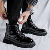 New Black Retro Chelsea Boots for Men Business Ankle Mens Boots patent Leather Slip-On Round Toe Handmade Short Boots