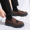 Platform Tassel Loafers Suede Shoes Men Thick-soled Wedding Shoes Black Formal Business Shoe Slip-on Leather Increase