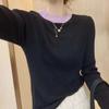 Round Neck Sweater Base Sweater Contrasting Color Design Autumn and Winter Korean Version Fashionable Loose and Slimming Knit Sweater Top for Women