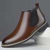 Men's Formal Ankle Boots British Trend Pointed Toe Business Casual Leather Big Size Designer Chelsea Slip-on Comfortable Shoes