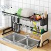 Sušák na nádobí nad dřez, rozšiřitelný 2patrový sušák na nádobí z nerezové oceli nad dřez s držákem na příbory a odkapávači