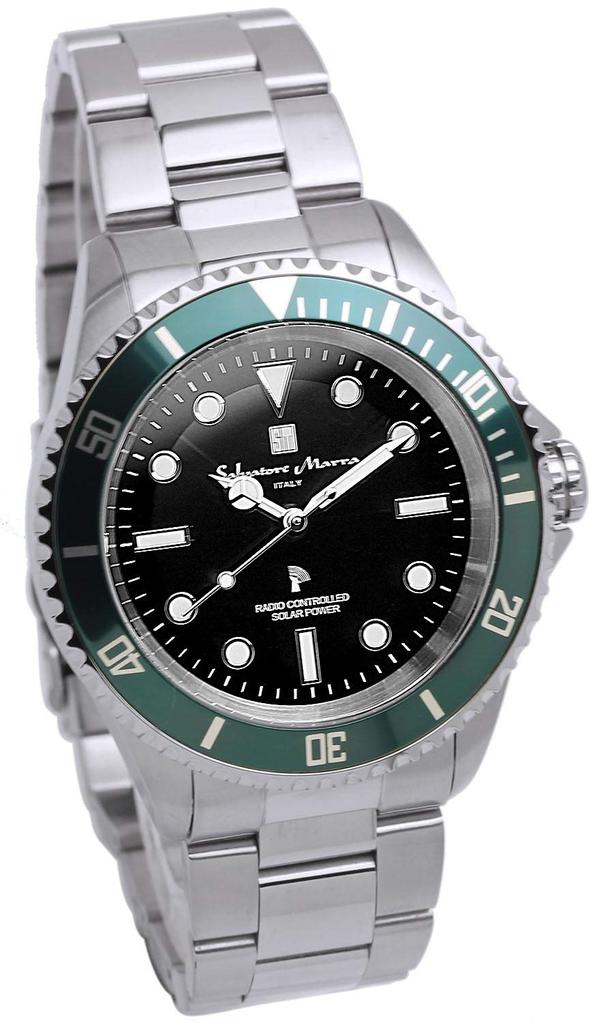 Hodinky Radio Solar 10 ATM Vodotěsné Italská Značka Černé x Zelené [Salvatore Mara] Pánské SM22110-SSBKGR