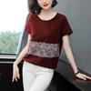 Korejská móda letní trička dámské oblečení O-Neck ledově hedvábný kontrastní barevný diamant ležérní všestranný volný top s krátkým rukávem