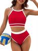2Pcs/Set Women Bikini Set Halter Racer Back Bra High Waist Swimming Briefs Set Sporty Color Block Swimsuit