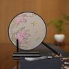 Fan Ancient Style Bamboo Round Vintage Flower Embroidery Chinese Style Hanfu Accessories Foldable Curly Long Handle Portable 1Pc