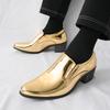 Jarní italské luxusní pánské společenské boty velikost 38-45 s ponitem z kůže pro muže, zvyšující výšku, nízký podpatek, zlaté společenské boty pro muže
