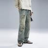 Men's Retro Patch Ripped Wide-Leg Jeans - Japanese Summer Style