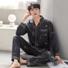 Spring Long Pajamas Sets Men's Lapel Button Shirt Pant Suit 2 Piece Long Sleeve Pajamas Lounge Home Wear Pijama Black Sleepwear