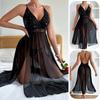 Large size sexy mesh deep v lace pajamas side split suspender skirt extended clothing pajamas women's suit