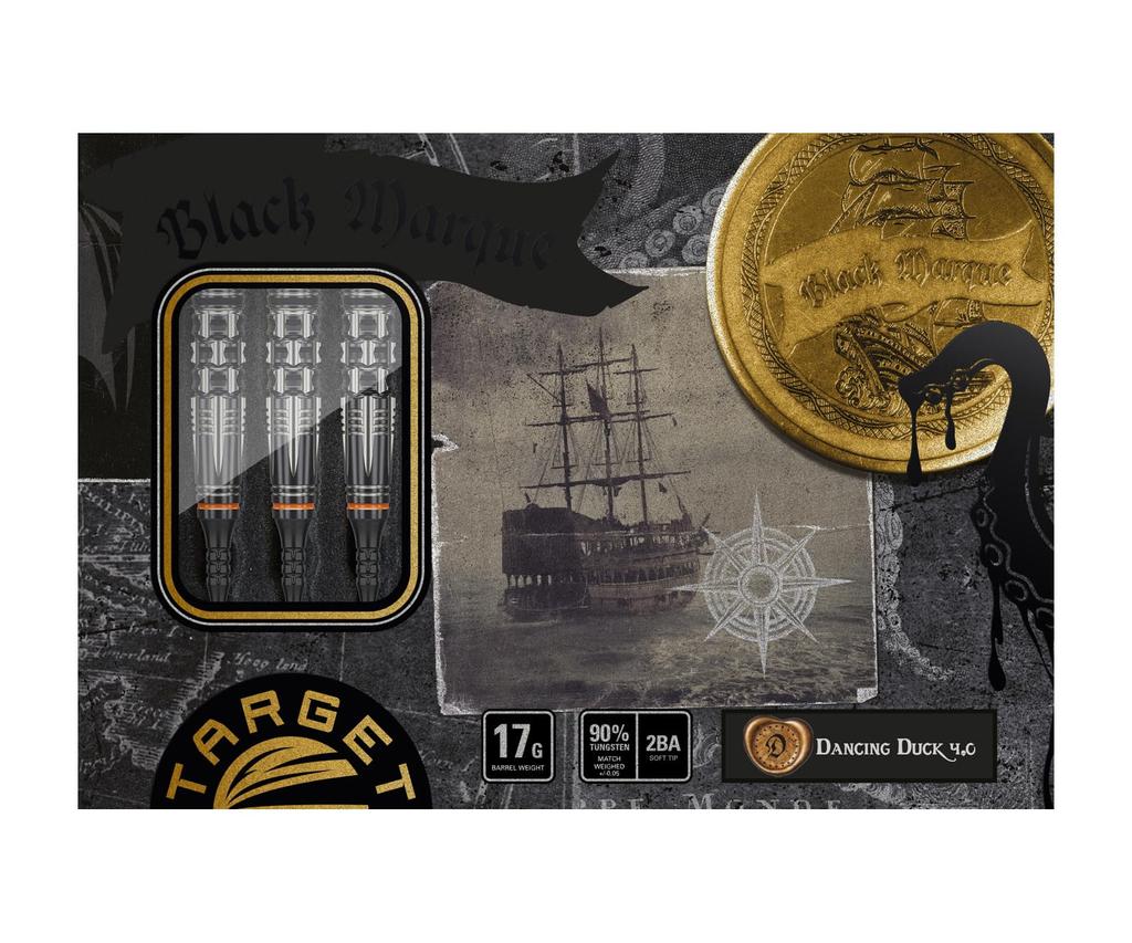 Target Japan Black Marque Dancing Duck G4 Tungsten Soft Tip Dart 17G Black Pixel Tips Black Letky a Shafts Mark Dancing Duck 90% sada K-Flex,