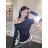 Horká dívka Jednoramenné tričko s dlouhým rukávem z německého sametu pro ženy Na začátek podzimu Odhalené rameno Štíhlé Nepravidelné Krátké Základní tričko Top