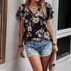 Women's Spring/summer Floral Print Lace-up Short-sleeved Shirt Blouse