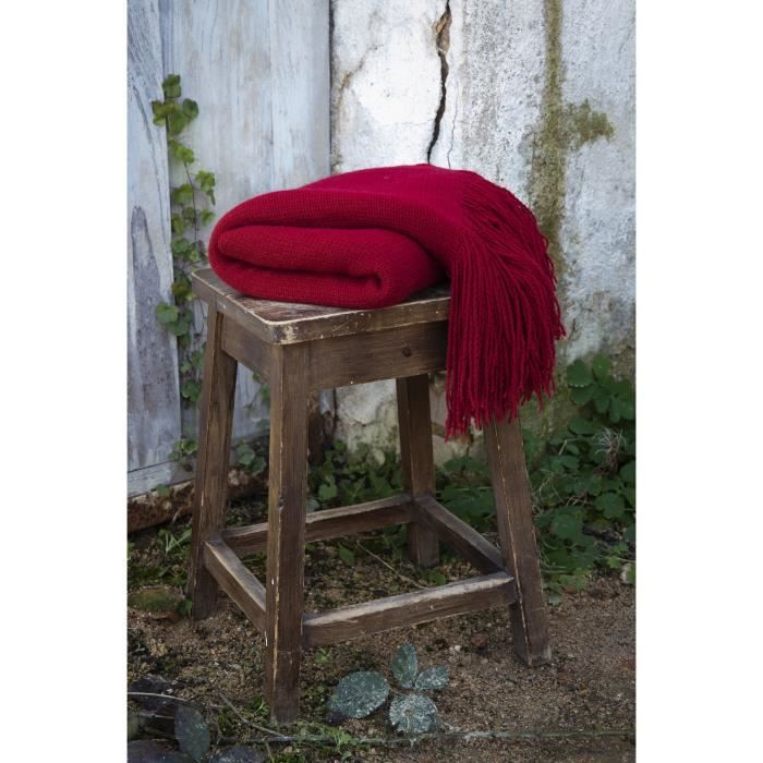 Plaid maille à franges - SACHA - Rouge - 125x150cm