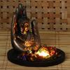 New Black and Golden Polyresin Palm Buddha Statue with Wooden Base, Fragranced Petals Tealight Holder
