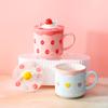 1ks 390 ml keramický hrnek Vysoce hodnotný hrnek na jahodový dort Dívčí roztomilý hrnek na vodu s víčkem Hrnek na domácí mléko na snídani