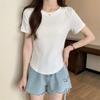 2025 Letní dámské tričko s krátkým rukávem a slim střihem se vzorem rybí kosti, jednoduchý top v korejském stylu v jednobarevném provedení