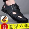 Men's leather shoes business casual dress single shoes soft sole non-slip summer men's sandals middle-aged and elderly father shoes black