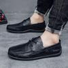 Doudou shoes men's casual black leather shoes one-pedal driving loafers men's shoes 2024 new spring shoes