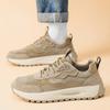 Men Small Khaki Shoes 2024 New Lace-up Thick Sole Casual Sneakers Versatile Leather Muffin Shoes Elevated Male Board Footwear