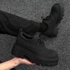 Matte Derby shoes men's senior sense big head black tooling shoes thick sole heightening commuter niche leather shoes 60701-J