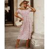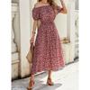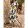 Summer New Floral One Shoulder Short Sleeve Dress Holiday Waisted Big Swing Dresses