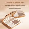 Korean Style 4-Color Blush & Highlight Palette: Matte & Shimmer for Dimensional Contouring and Face Brightening.