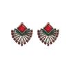 Retro Bohemian Ruby & Crystal Fan-Shaped Earrings - European & American Ethnic Style