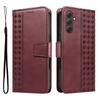 For Samsung Galaxy A54 5G Leather Case Wallet Stand Grids Imprinted Phone Cover with Strap