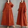 Spring Women's Cotton and Linen Floral Long Sleeved Dress