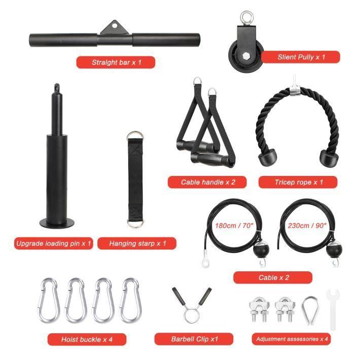 Kladkový systém pro posilování Fitness LAT Machine, Kulturistika Kladka Váleček pro lanko Váleček, 180cm & 230cm lanko, pro Biceps