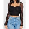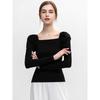 New Fashion Square Neck Puff Sleeve Women's Top Solid Color Net Yarn Cotton Long Sleeve Bottoming Shirt