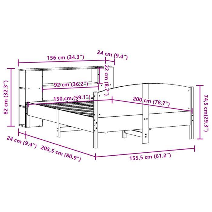 VidaXL Lit bibliothèque sans matelas blanc 150x200 cm bois pin massif 3323063