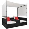 Chaise longue extérieur avec rideaux - Noir - 197 x 140 x 180 cm