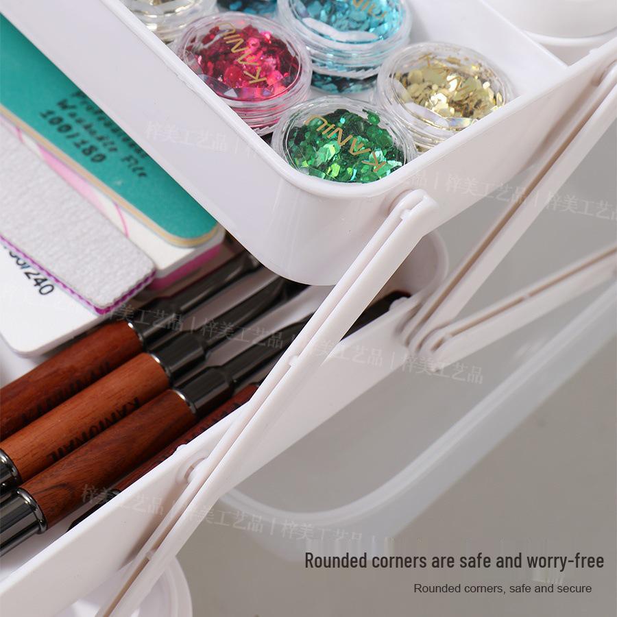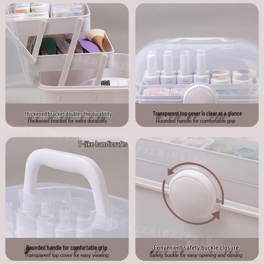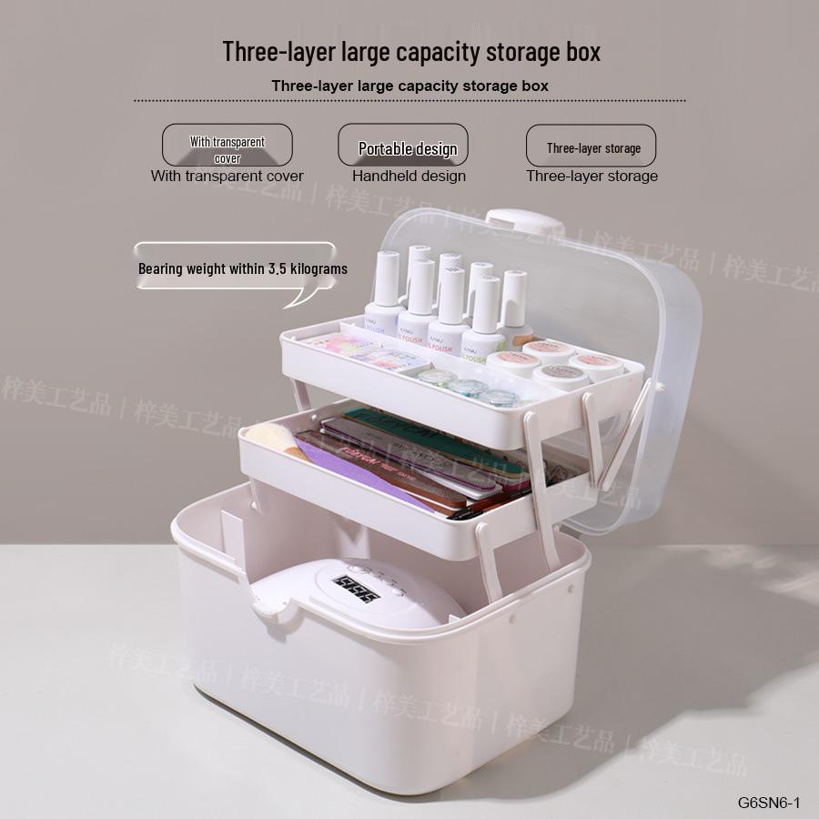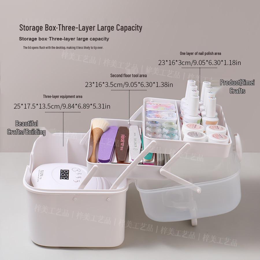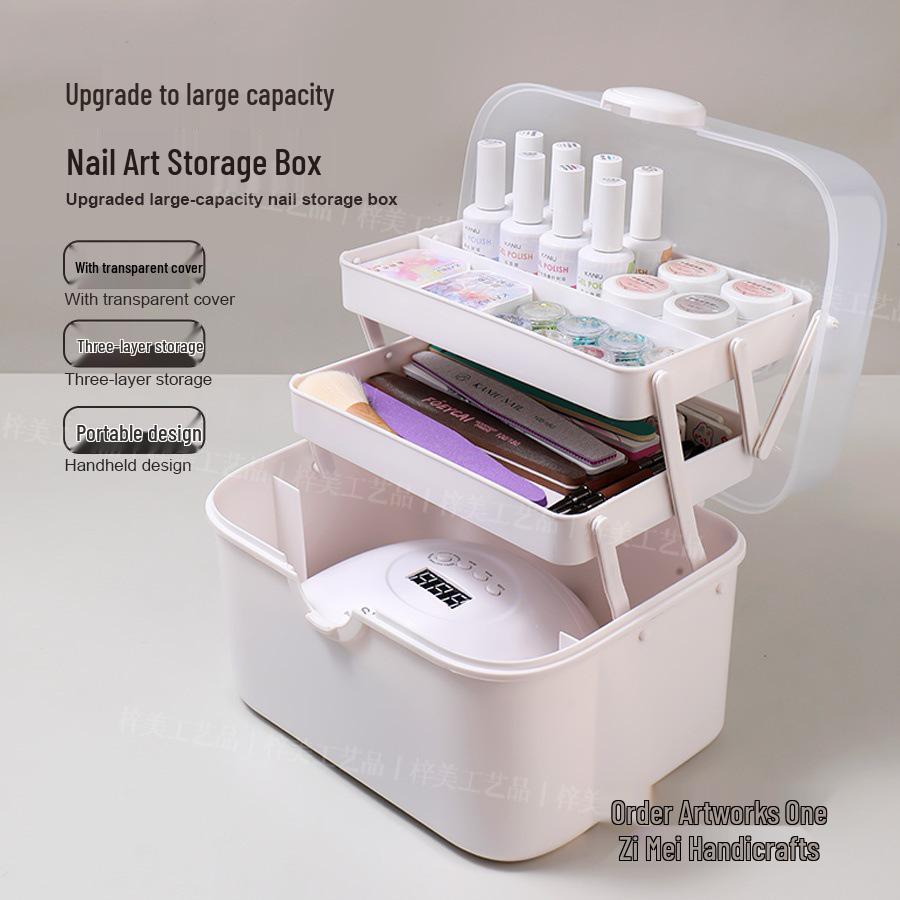 Nail Art Organizer: Upgraded Large Three-Layer, Handheld Portable Storage for Tools & Gel Lamp
