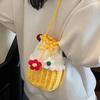 Cute little bag summer 2025 Mori girl foreign style shoulder crossbody knitted cartoon strawberry bucket bag